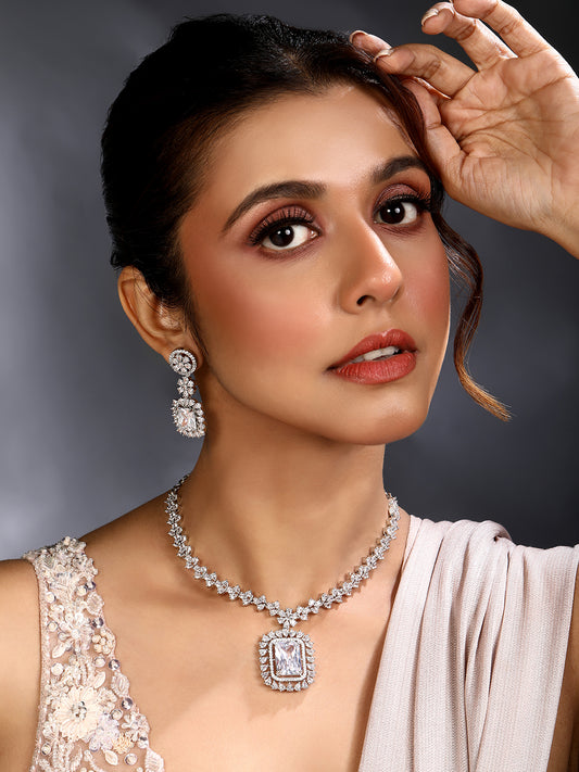Rhodium-Plated Cubic Zirconia-Studded Bridal Statement Jewellery Set