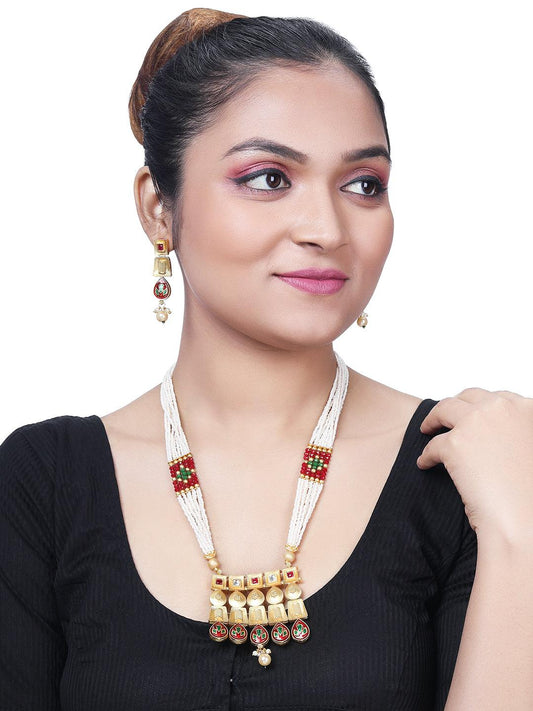 Gold Plated Kundan Studded Pearls Beaded Long Ethnic Jewellery Set