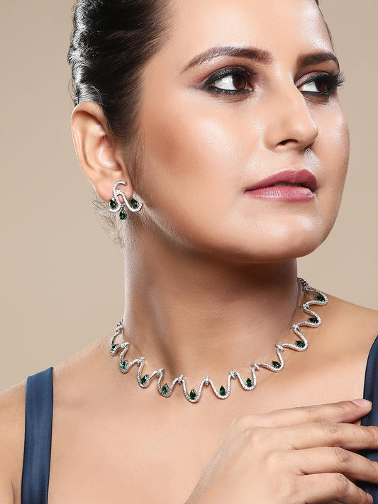 Emerald Elegance: Rhodium-Plated White & Green CZ Jewellery Set