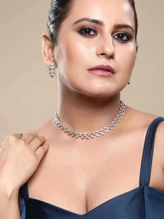 Firozi Glam: Rhodium-Plated Choker & Earring Set