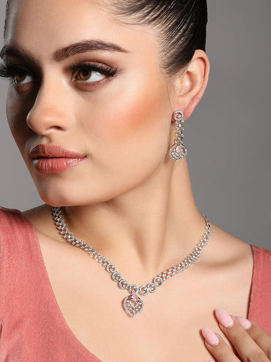 Rhodium Plated White and Baby Pink CZ Stone Studded Choker Set