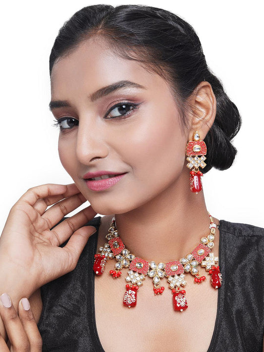 Gold Plated Kundan Studded Multicolor Ethnic Choker Jewellery Set
