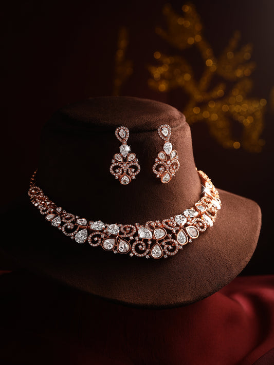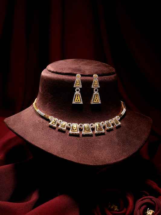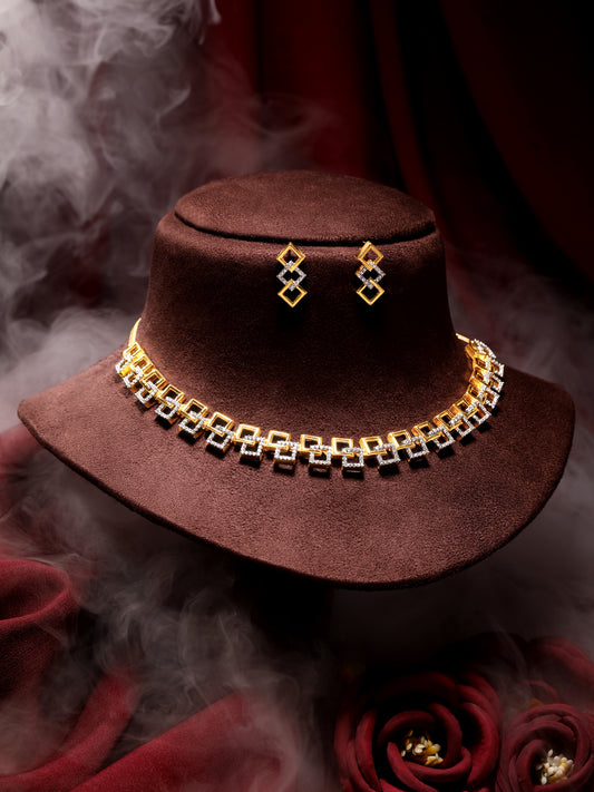 22K Gold-Plated Cubic Zirconia-Studded Contemporary Choker Jewellery Set