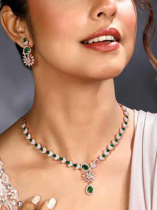 ack-Plated Cubic Zirconia-Studded Triple Layered Diamond Jewellery Set