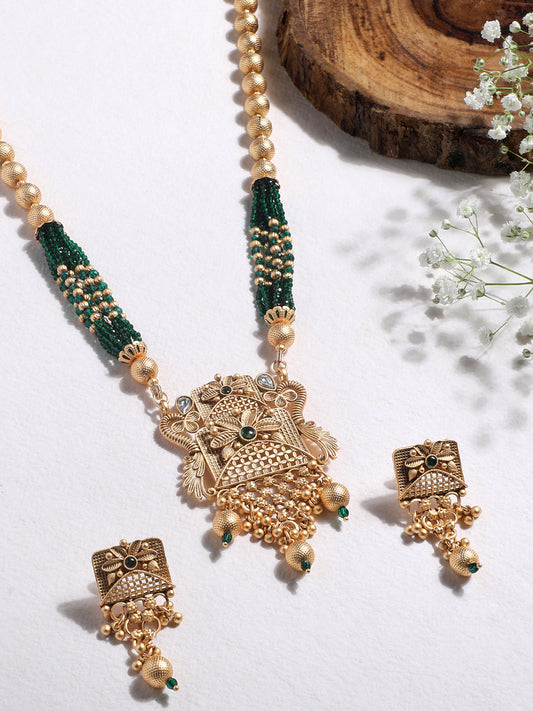 Rajwadi Style Matte Silver Plated Green Stone Jewellery Set