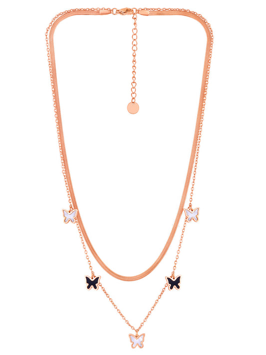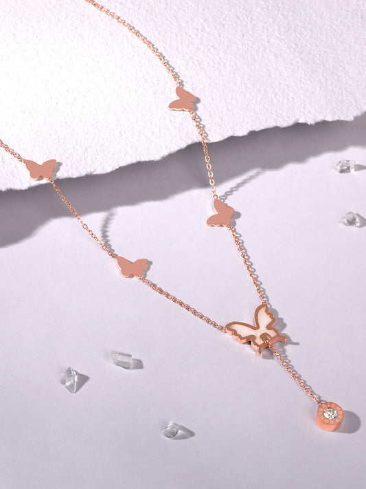 Rose Gold-Plated Butterfly And Floral Charm Chain