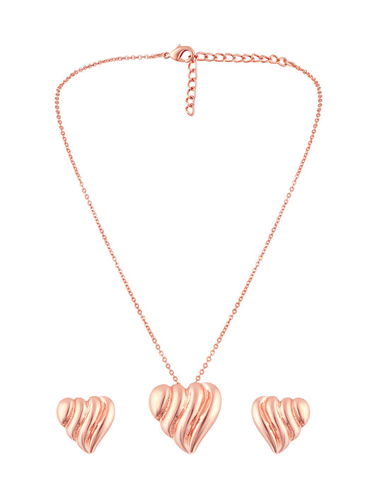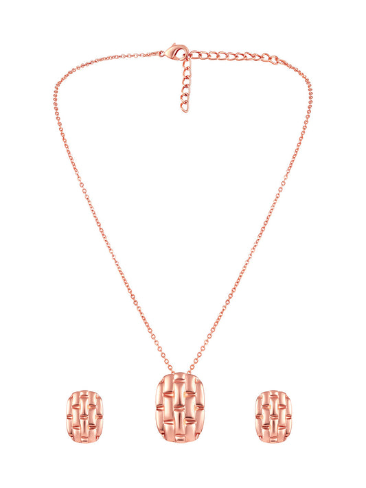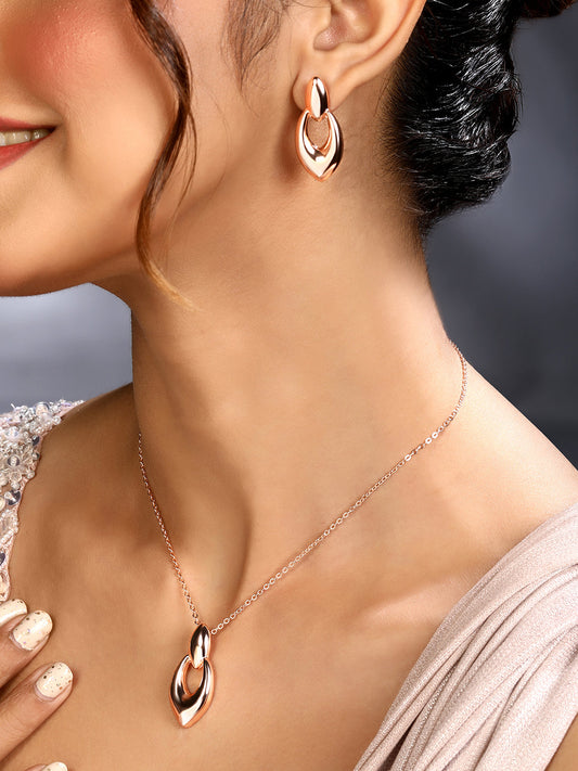 Rose Gold Plating Handcrafted Pendant Set With Stud Earring
