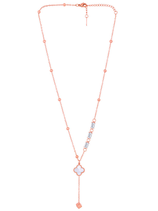 Rose Gold Cz American Diamond Chain With Lobster Claw Clasp.