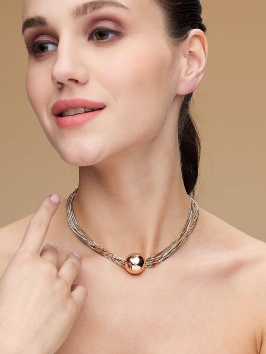 Rose Gold Plated Beaded Statement Choker Necklace Chain