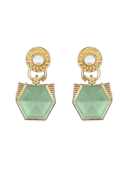 Silver Plated Emerald Studded Geometric Drop Earrings