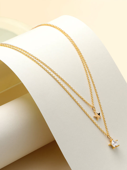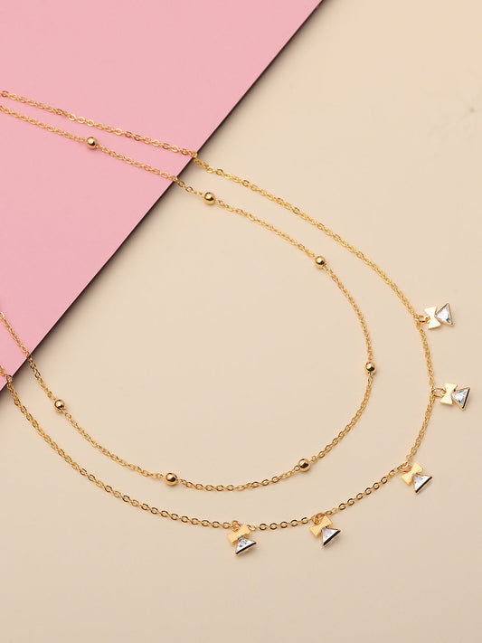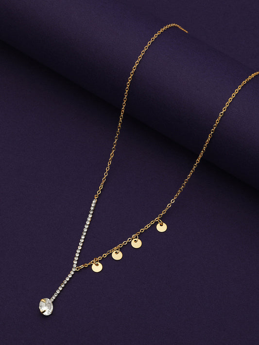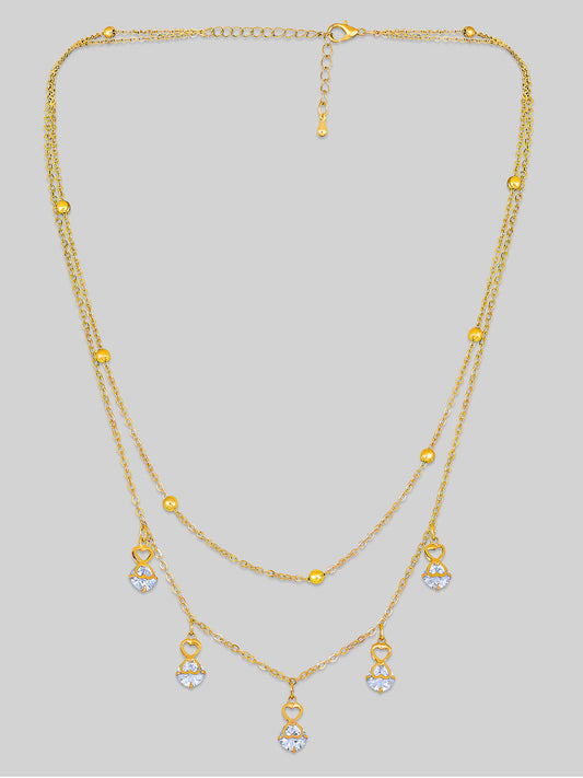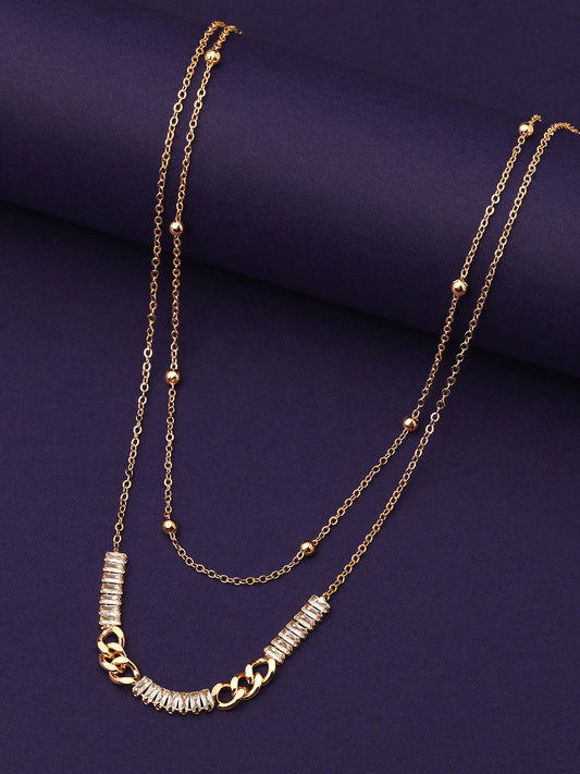 Gold Plated Brass Chain With Cubic Zirconia And Lobster Claw Clasp.