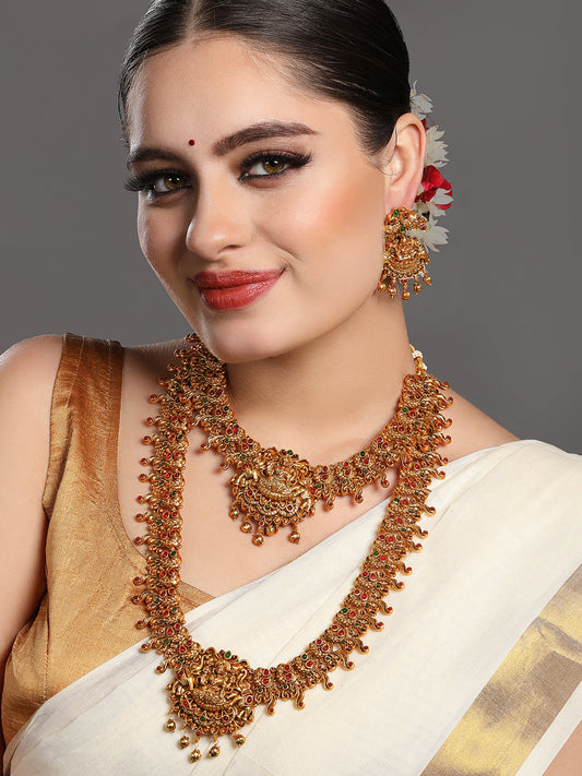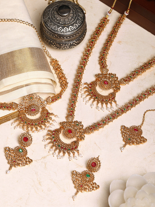 Gold-Plated Stone-Studded & Pearls Beaded Jewellery Set
