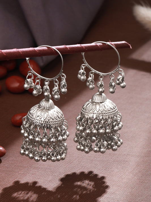Silver-Plated Beaded Dome Shaped Jhumkas