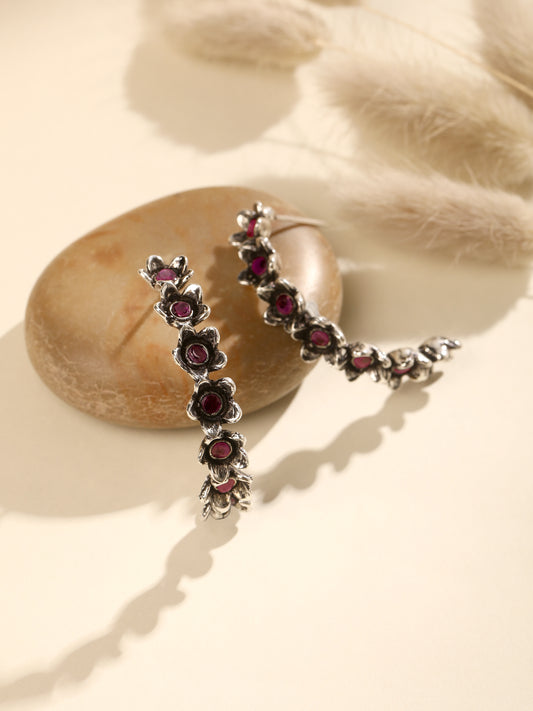 Silver Plated Faux Ruby Studded Contemporary Drop Earrings