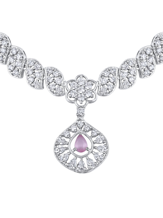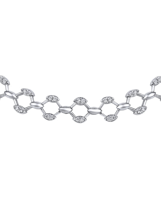 Rhodium-Plated Cubic Zirconia-Studded Delicate Choker Jewellery Set