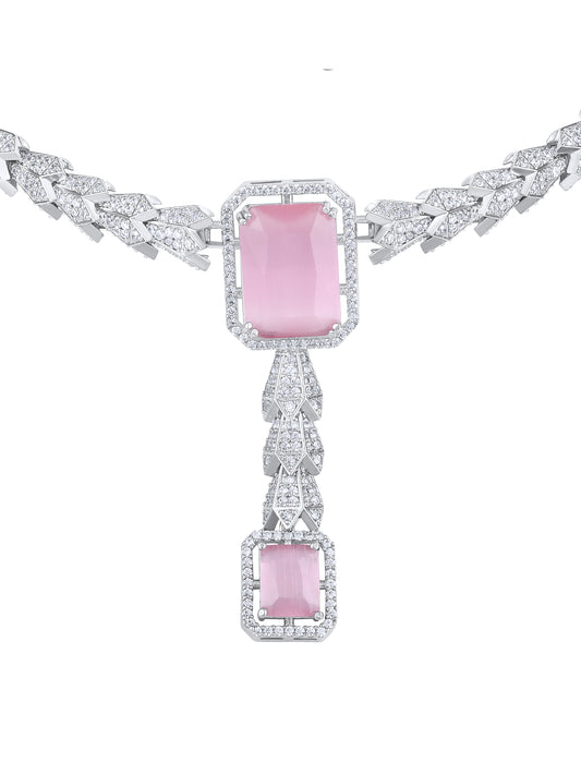 Pink & White Radiance: Rhodium-Plated Choker & Earring Set