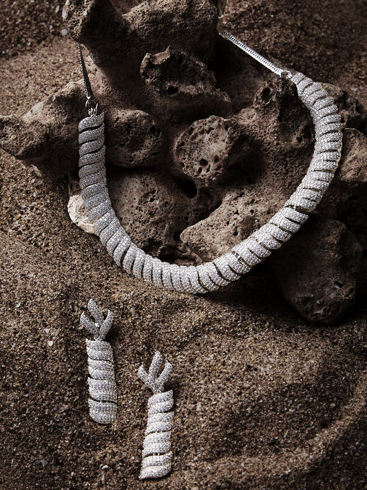 Rhodium-Plated Cubic Zirconia-Studded Statement Choker Jewellery Set