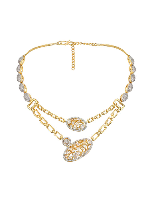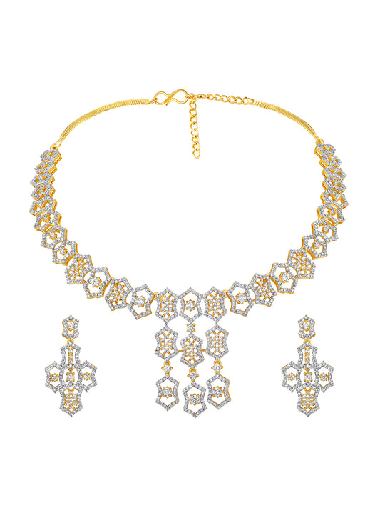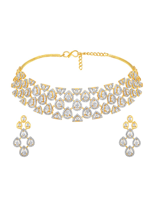 Two Tone CZ Studded Choker Jewellery Set