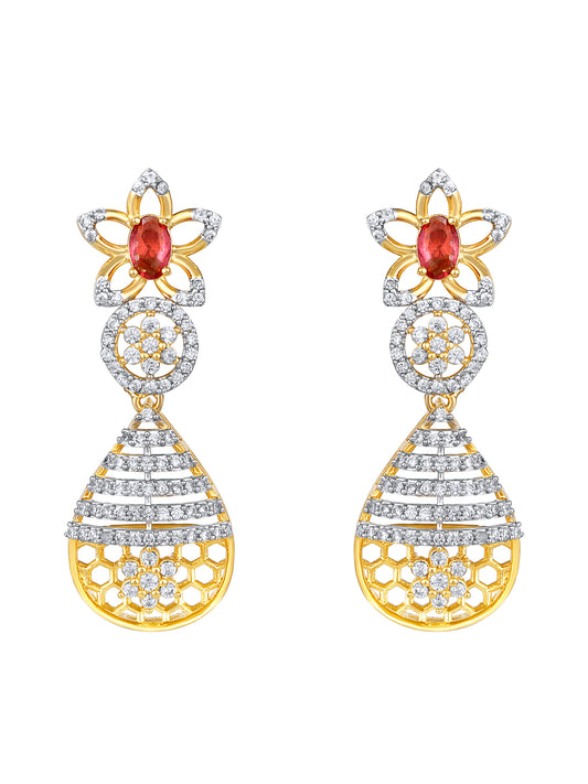 Rhodium-Plated Cubic Zirconia Studded Floral Jewellery Set