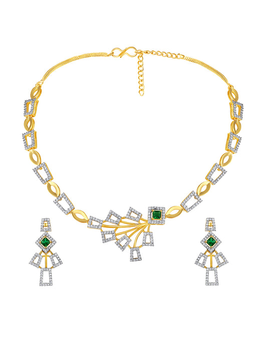Two Tone CZ Studded Emerald Choker Jewellery Set