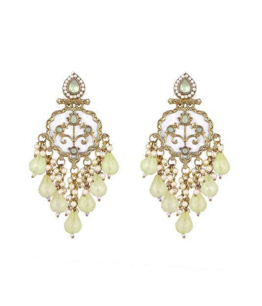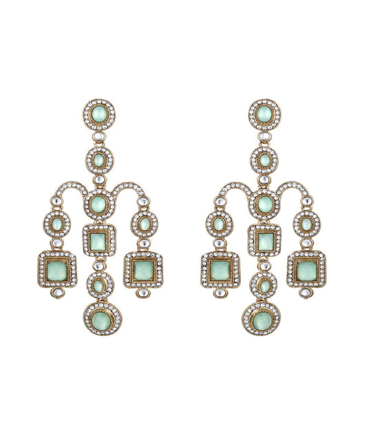 Traditional Crystal Stone Studded Emerald Drop Earrings
