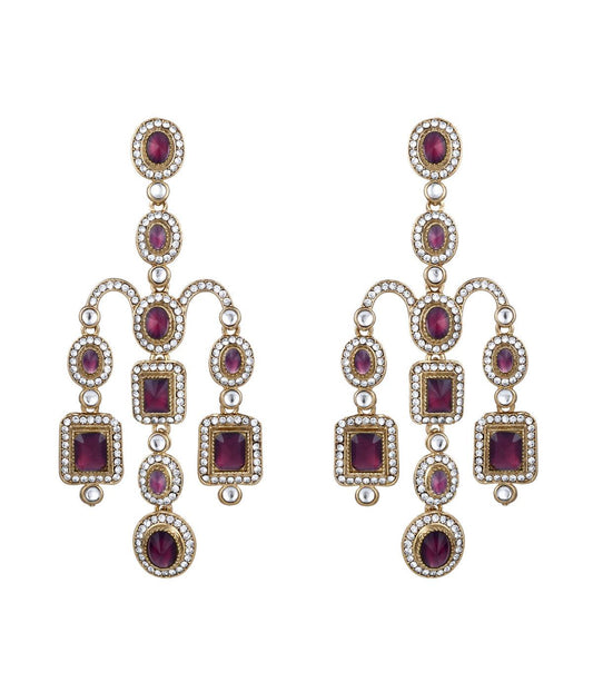 Traditional Purple Crystal Stone Drop Chandbali Earrings