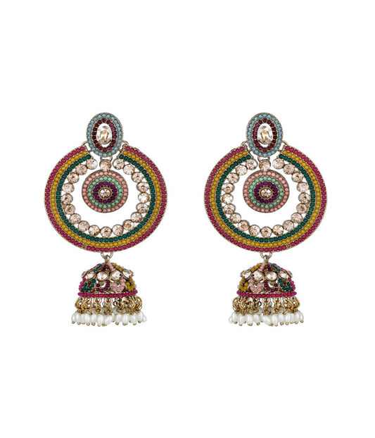 Traditional Shimmering Dome Shape Multicolour Jhumka Earrings
