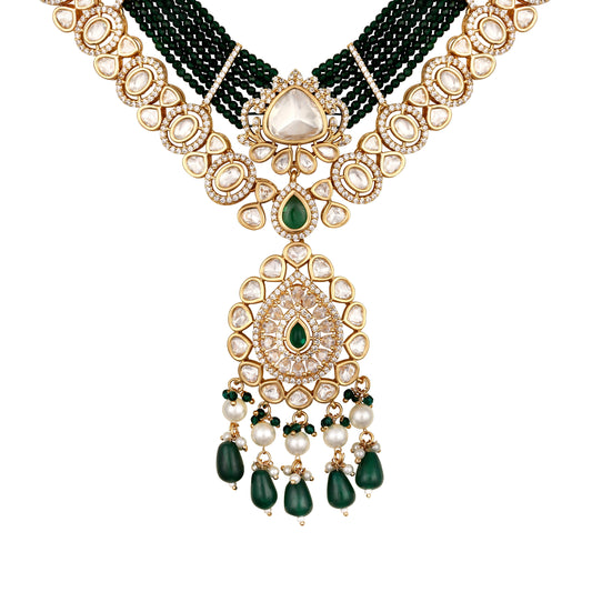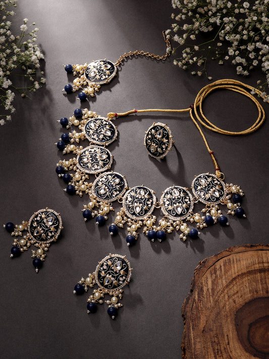 22K Gold-Plated Kundan Studded & Beaded Contemporary Jewellery Set