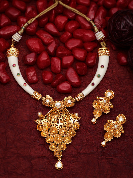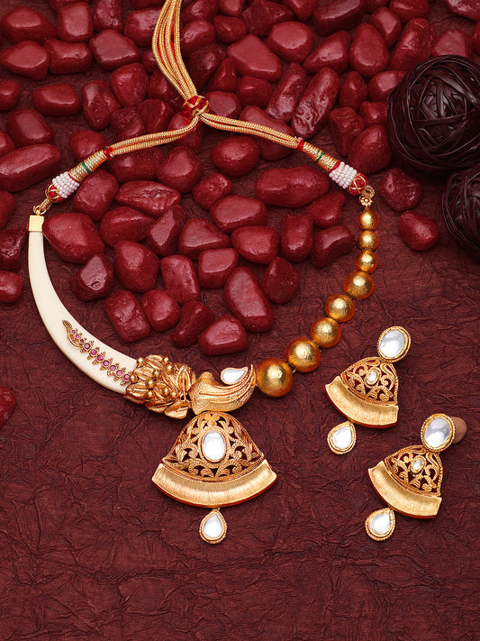 Gold-Plated Kundan Necklace Set With Drop Earring