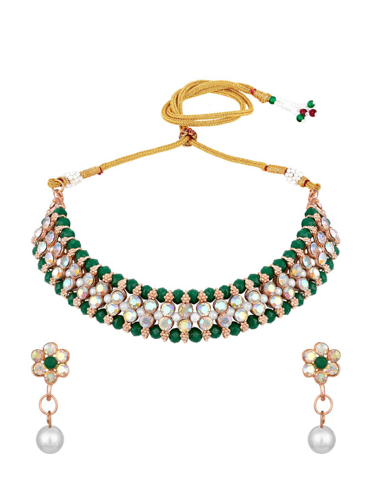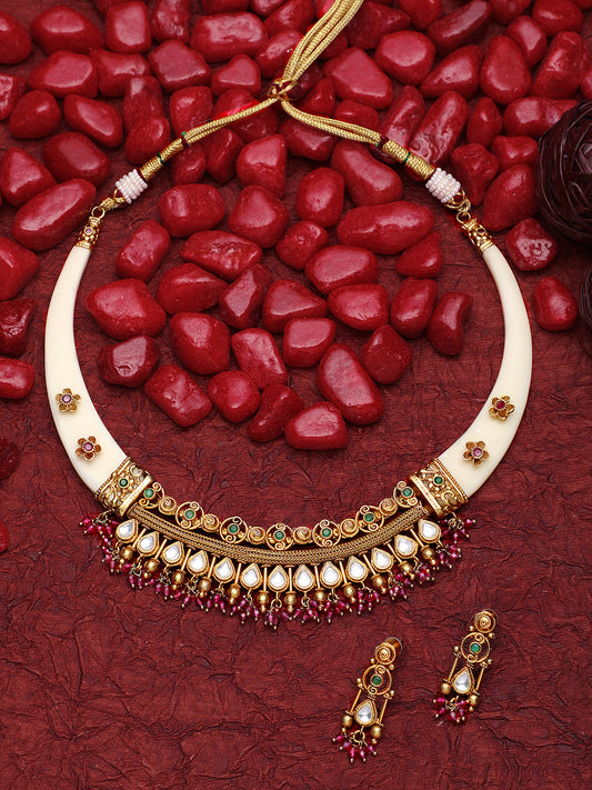 Gold Plated Kundan Studded Pearls Beaded Ethnic Choker Jewellery Set