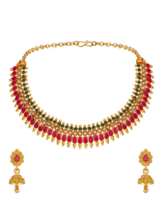 Gold Plated Kundan Studded Multicolor Ethnic Choker Jewellery Set