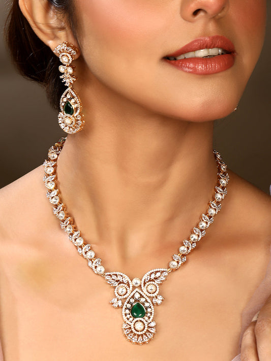 Gold-Plated Kundan Necklace Setwith Drop Earring