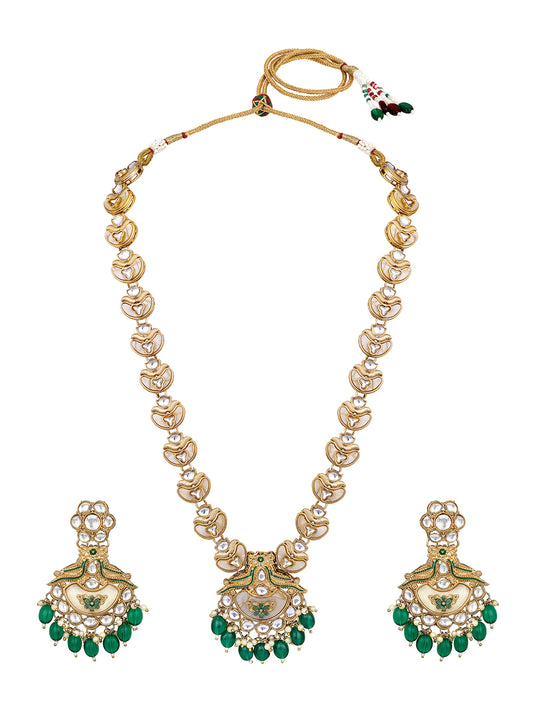 Gold Plated Kundan Studded Pearls Beaded Long Ethnic Jewellery Set