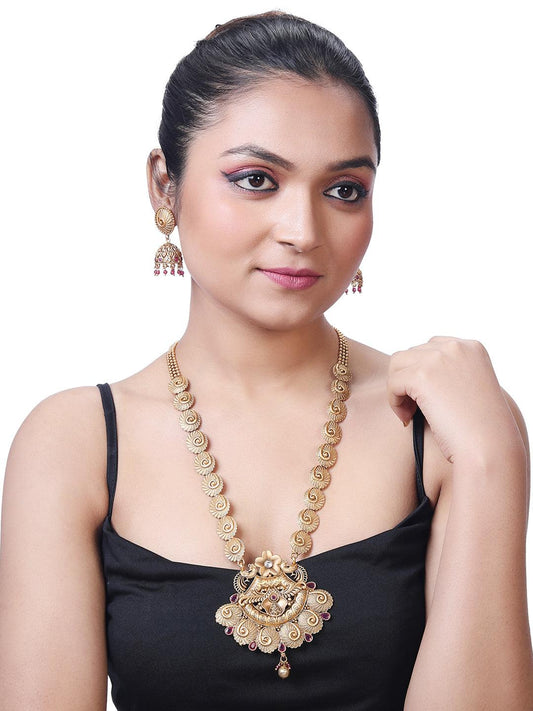 Gold Plated Regal Pearl Long Necklace Set