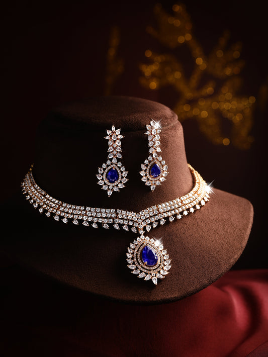 Gold-Plated Cz American Diamond Necklace Set With Drop Earring