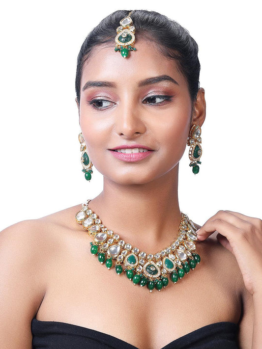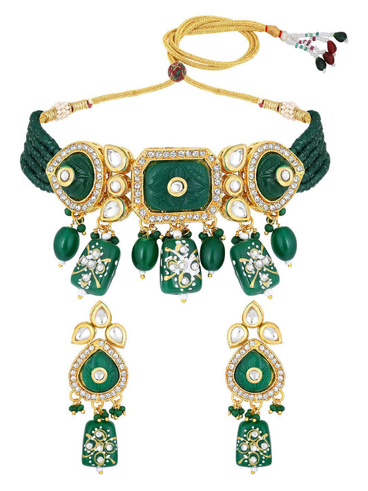 Gold Plated Kundan Studded Pearls Beaded Ethnic Choker Jewellery Set