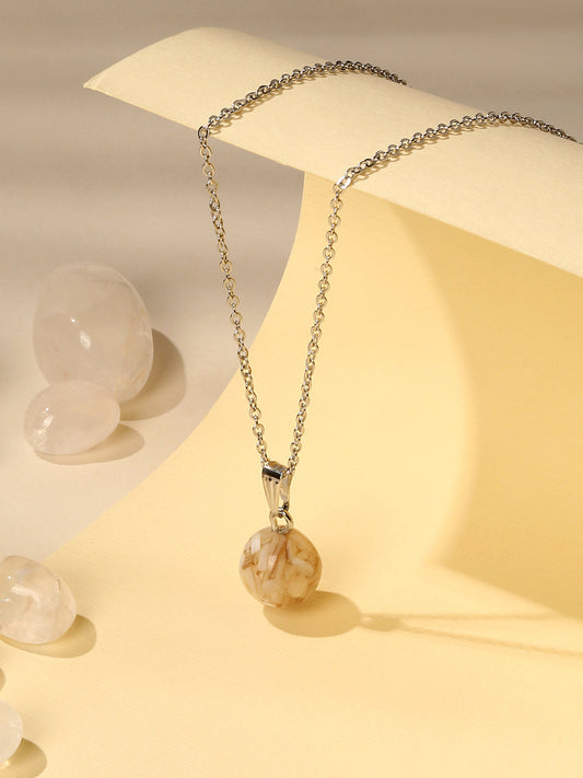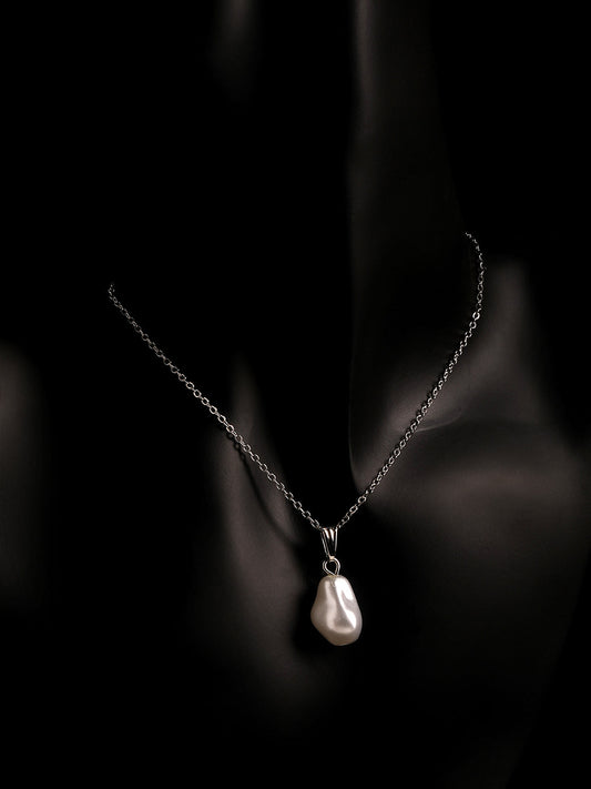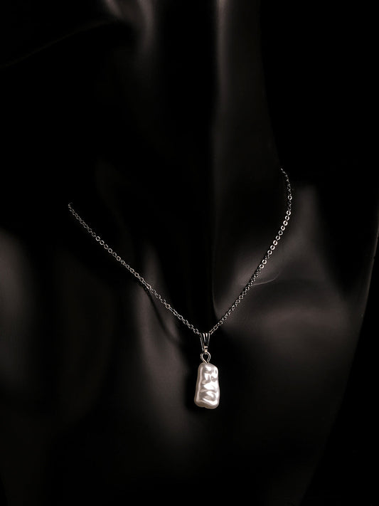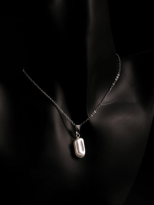Contemporary Rhodium Plated Pearl Charm Pendant With Chain For Women
