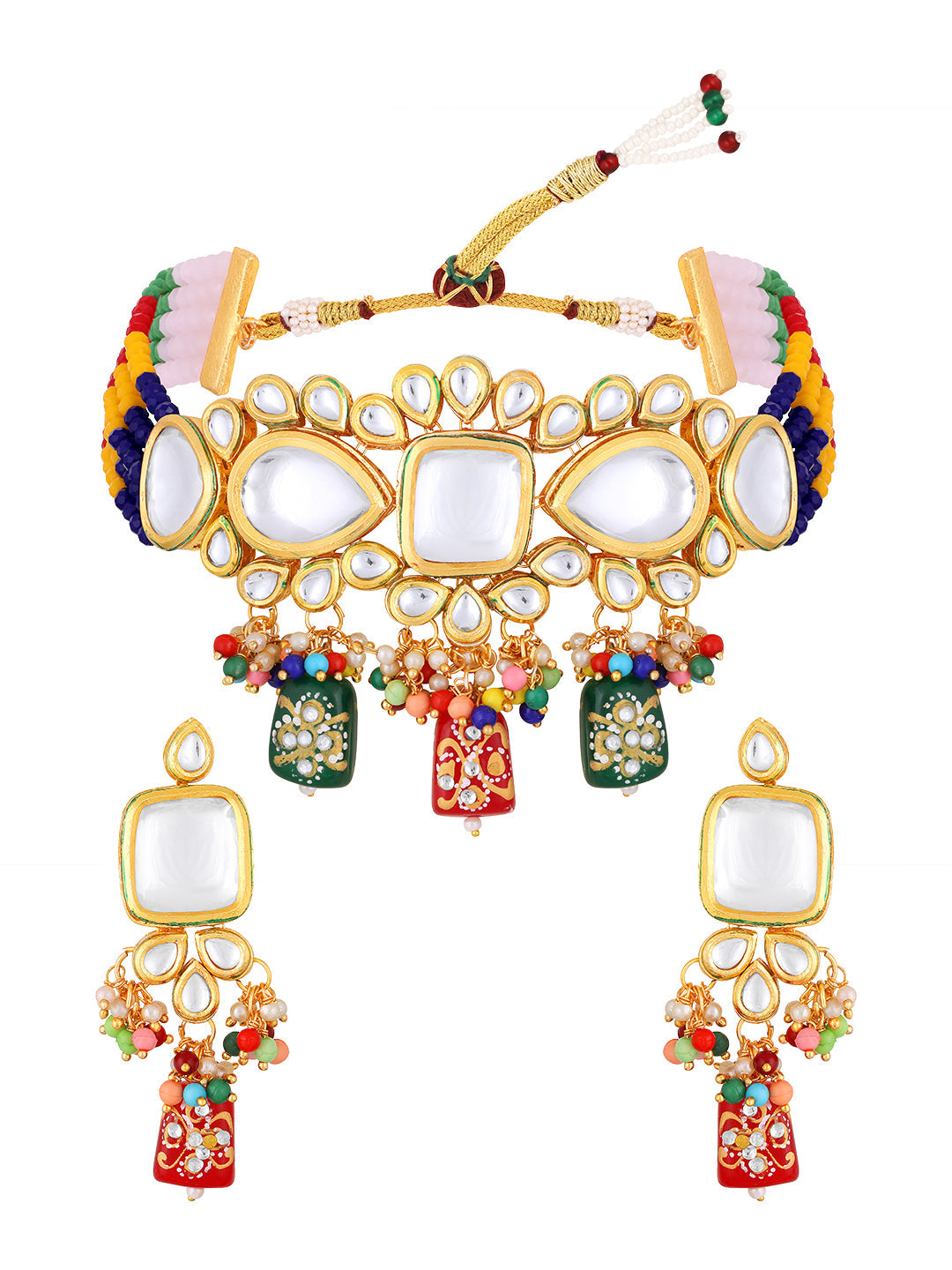 Asmitta Jewellery women's Multicolor Glass Pearl Necklace set crafted in premium Alloy with elegant Gold Plated. This Necklace set blends timeless beauty with modern sophistication, making it perfect