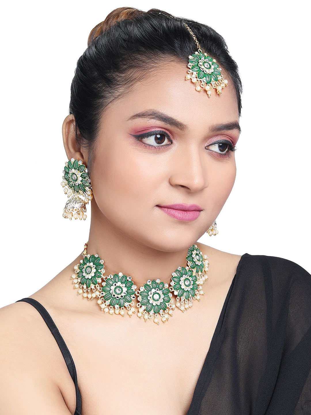 Asmitta Jewellery women's Gold/Green Pearl Necklace set crafted in premium Alloy with elegant Gold Plated. This Necklace set blends timeless beauty with modern sophistication, making it perfect