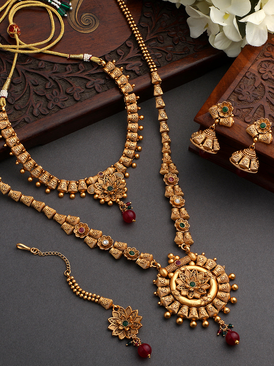 Asmitta Jewellery women's Multicolor Pearl Necklace set crafted in premium Brass with elegant Gold Plated. This Necklace set blends timeless beauty with modern sophistication, making it perfect