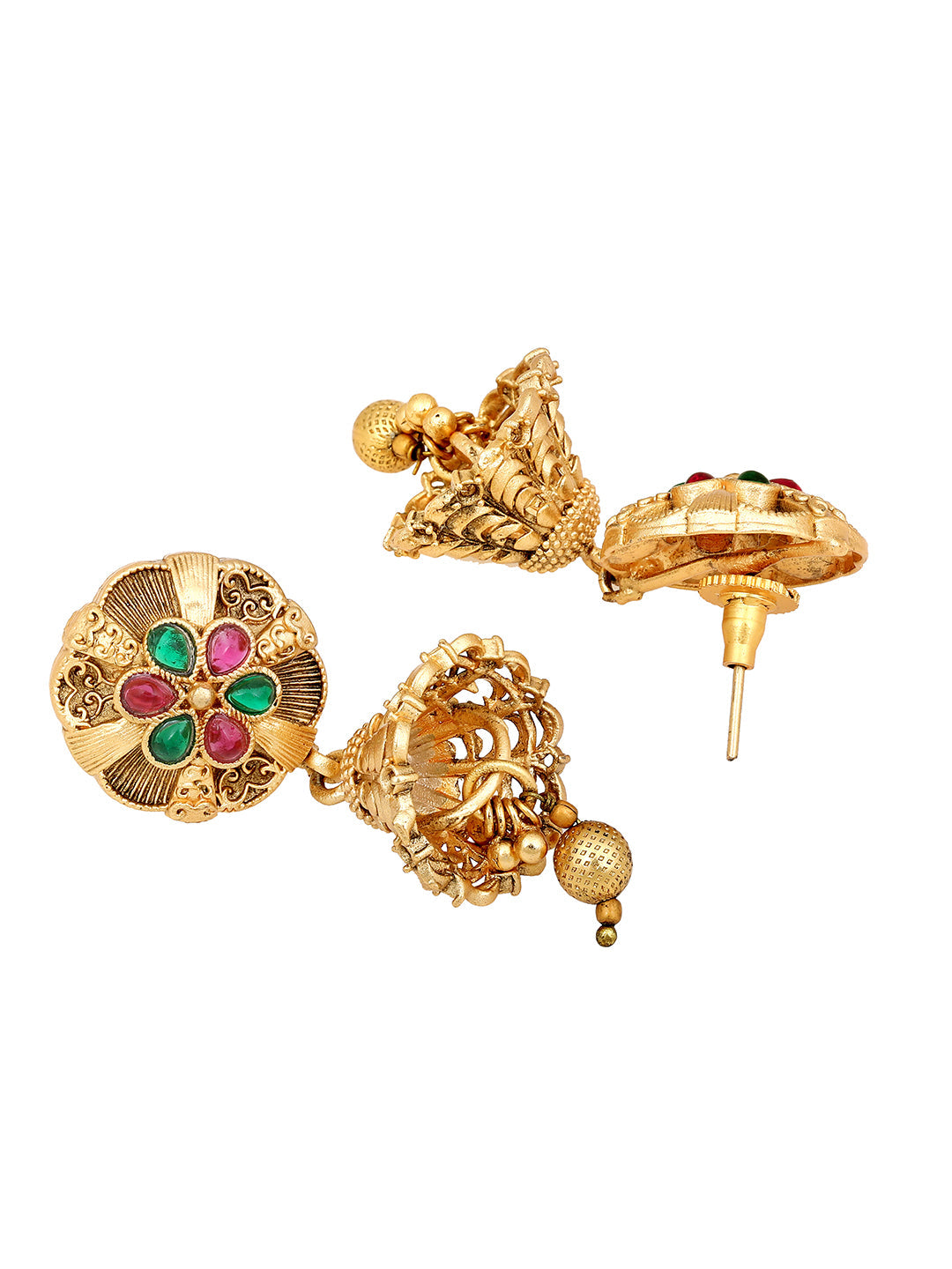 Multicolor Artificial Stonepearl Gold-Plated Dangle Earrings