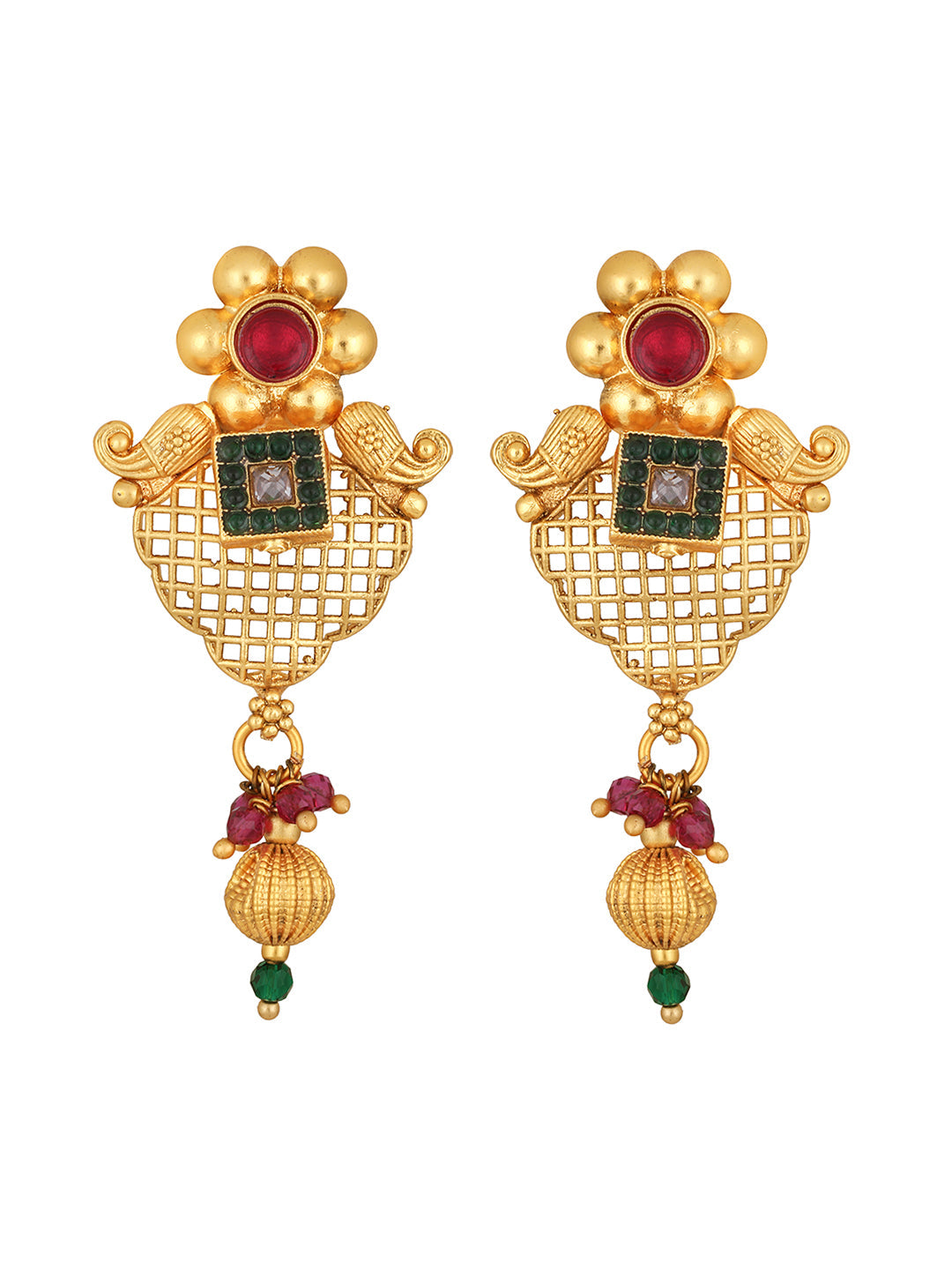 Gold-Plated Multicolor Pearl Dangle Earrings With Necklace Set