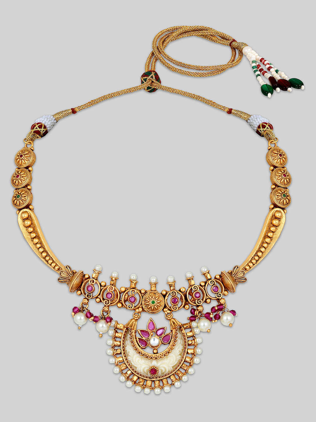 Asmitta Jewellery women's Gold/maroon Kundan Necklace set crafted in premium Copper with elegant Gold Plated. This Necklace set blends timeless beauty with modern sophistication, making it perfect