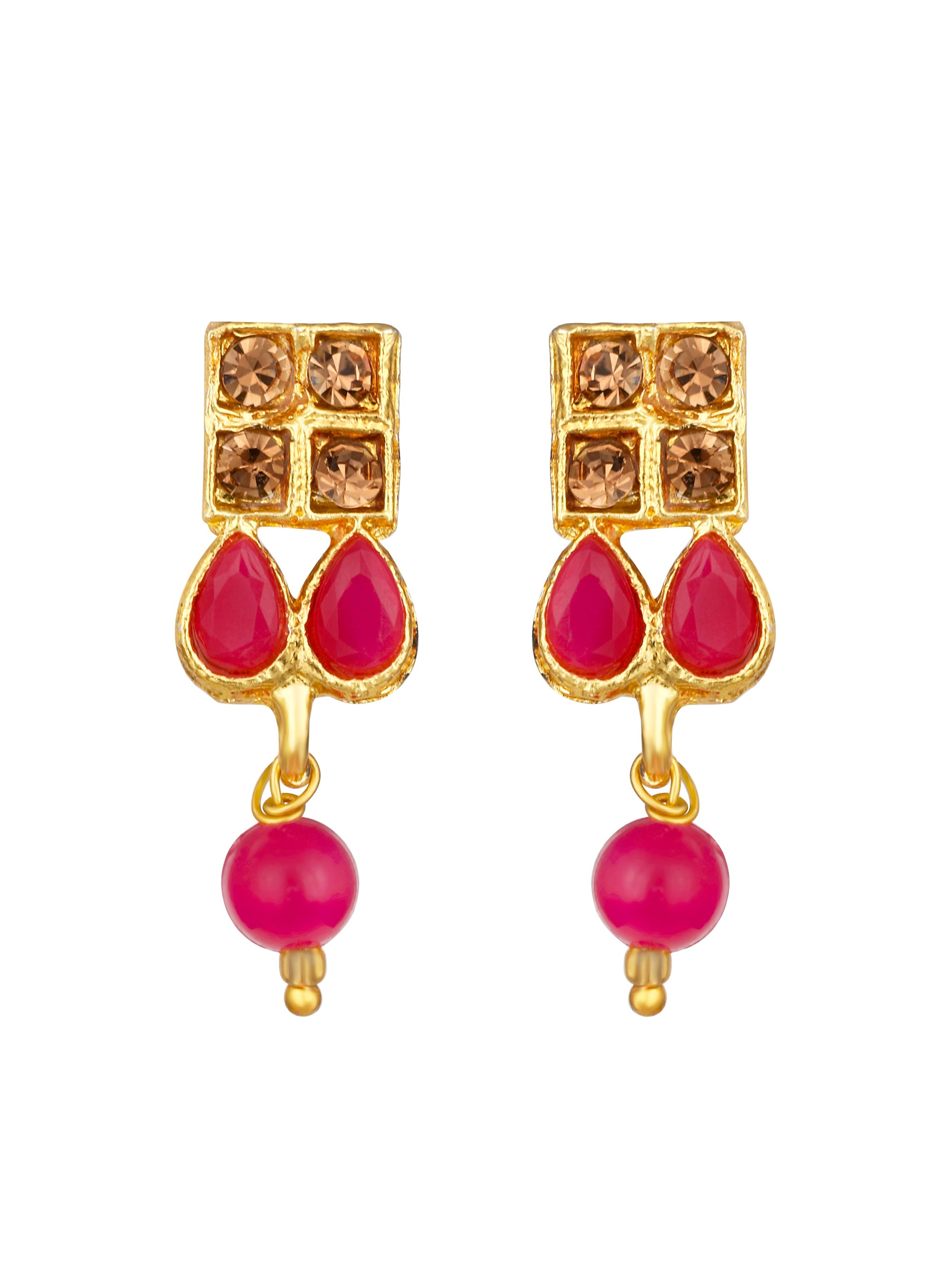 Gold-Plated Multicolor Artificial Stone Kundan Pearl Drop Earring With Necklace Set