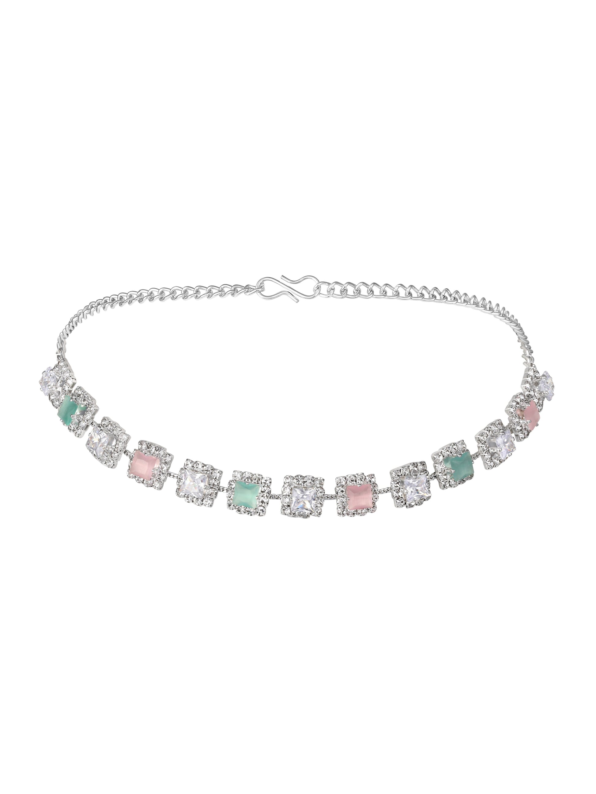 Asmitta Jewellery women's Pink/ Turquoise American Diamond Necklace set crafted in premium Alloy with elegant Silver Plated . This Necklace set blends timeless beauty with modern sophistication, making it perfect