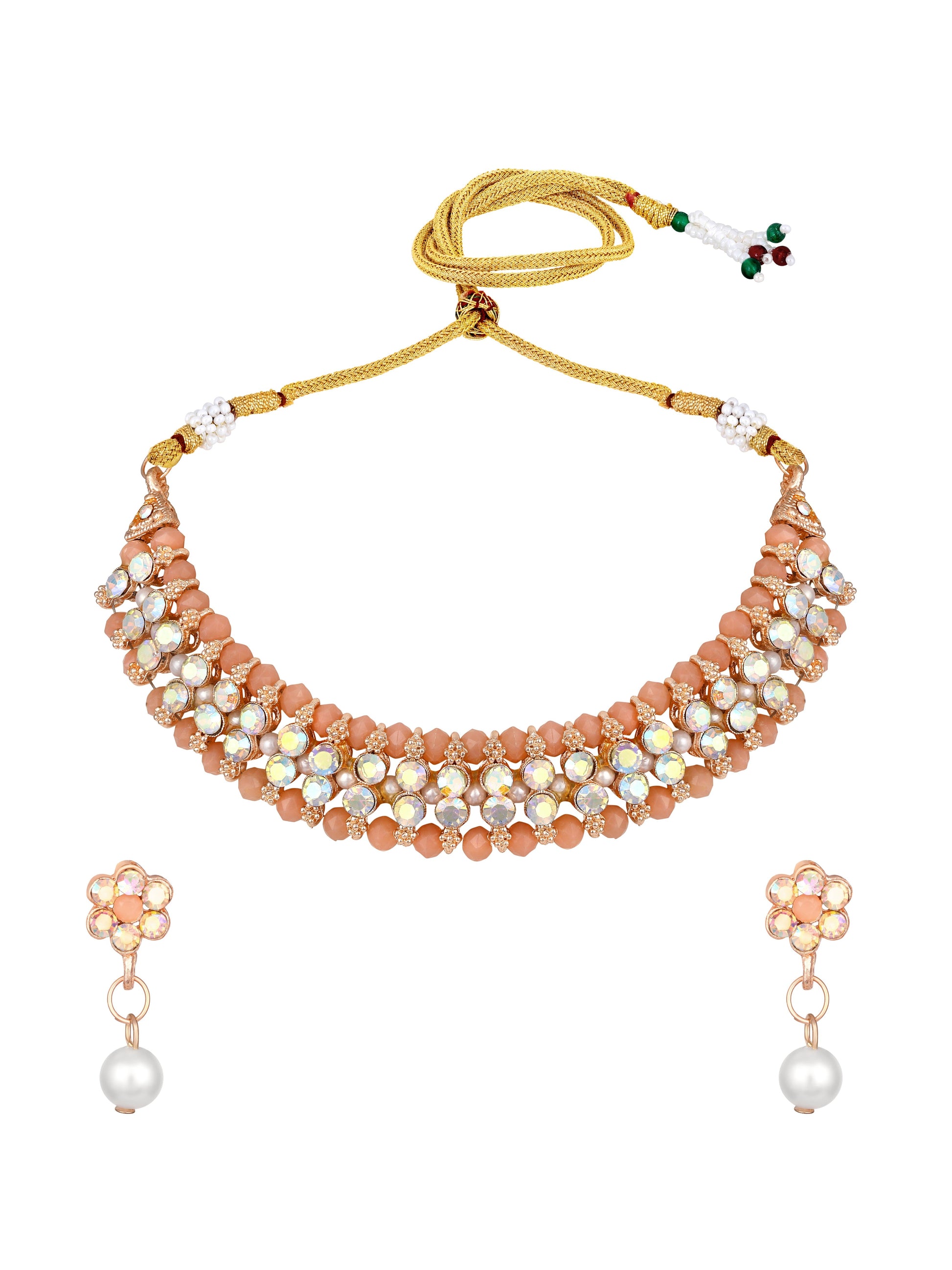 Asmitta Jewellery women's Brown Kundan and Stones Necklace set crafted in premium Alloy with elegant Gold Plated. This Necklace set blends timeless beauty with modern sophistication, making it perfect