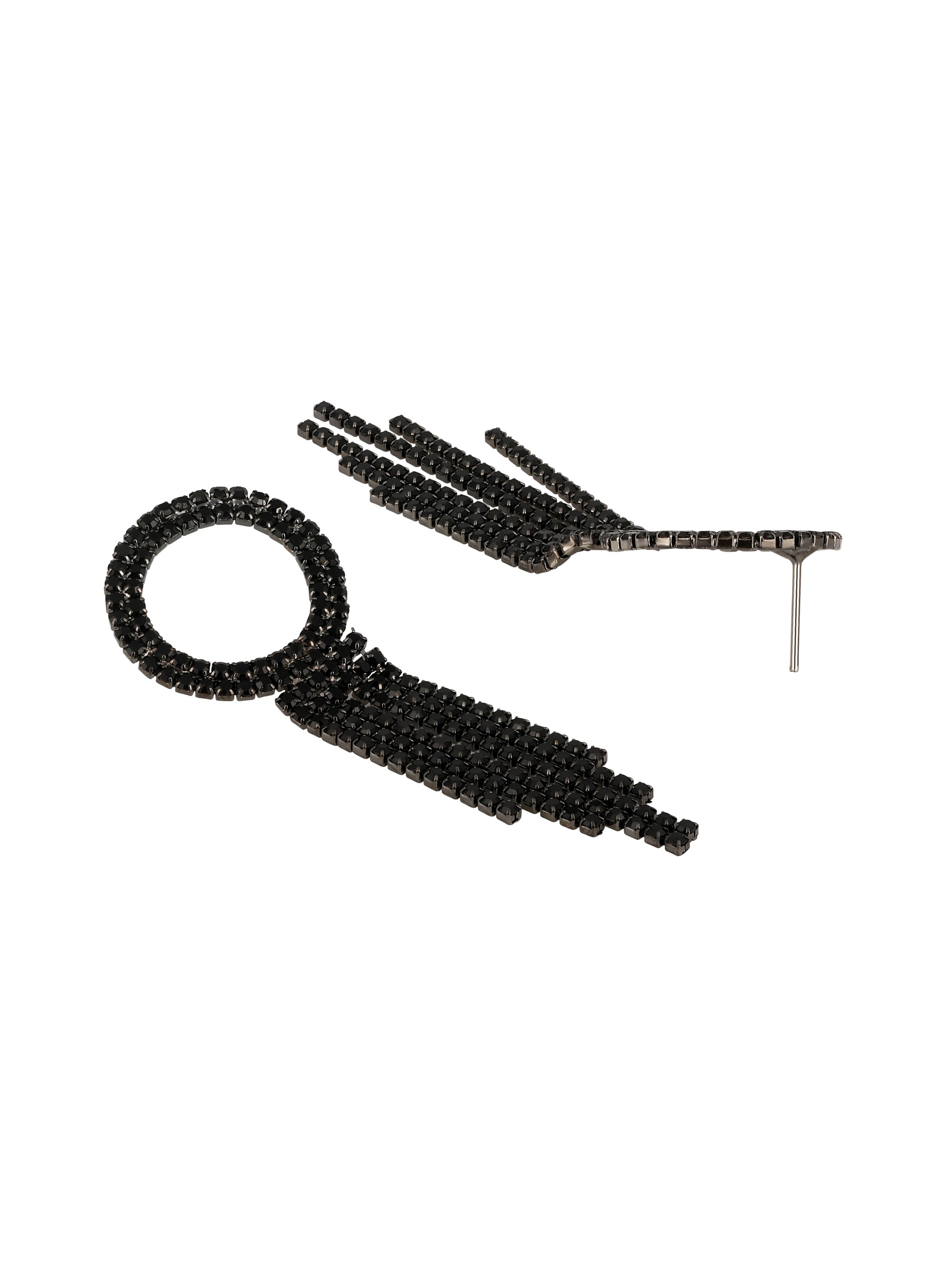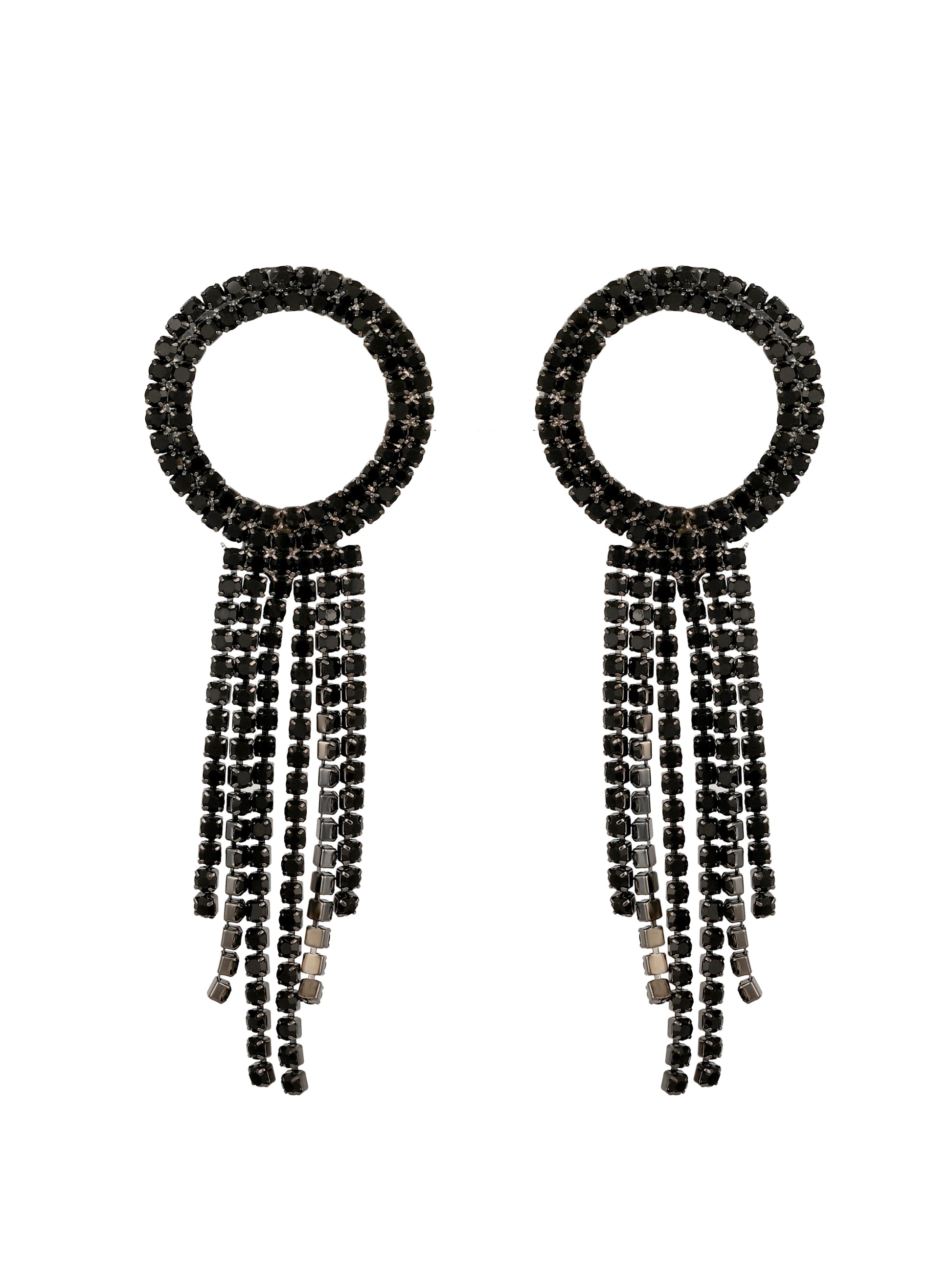 Black Silver-Plated Artifical American Diamonds Necklace Set With Hoop Earring