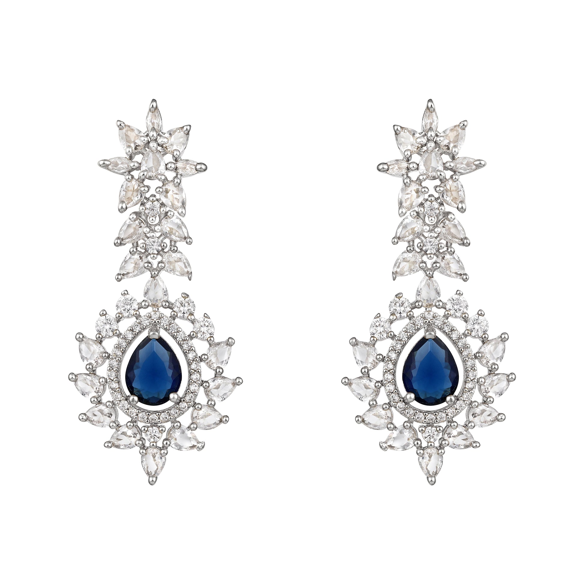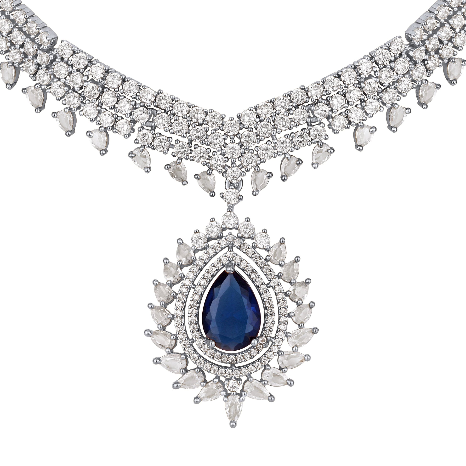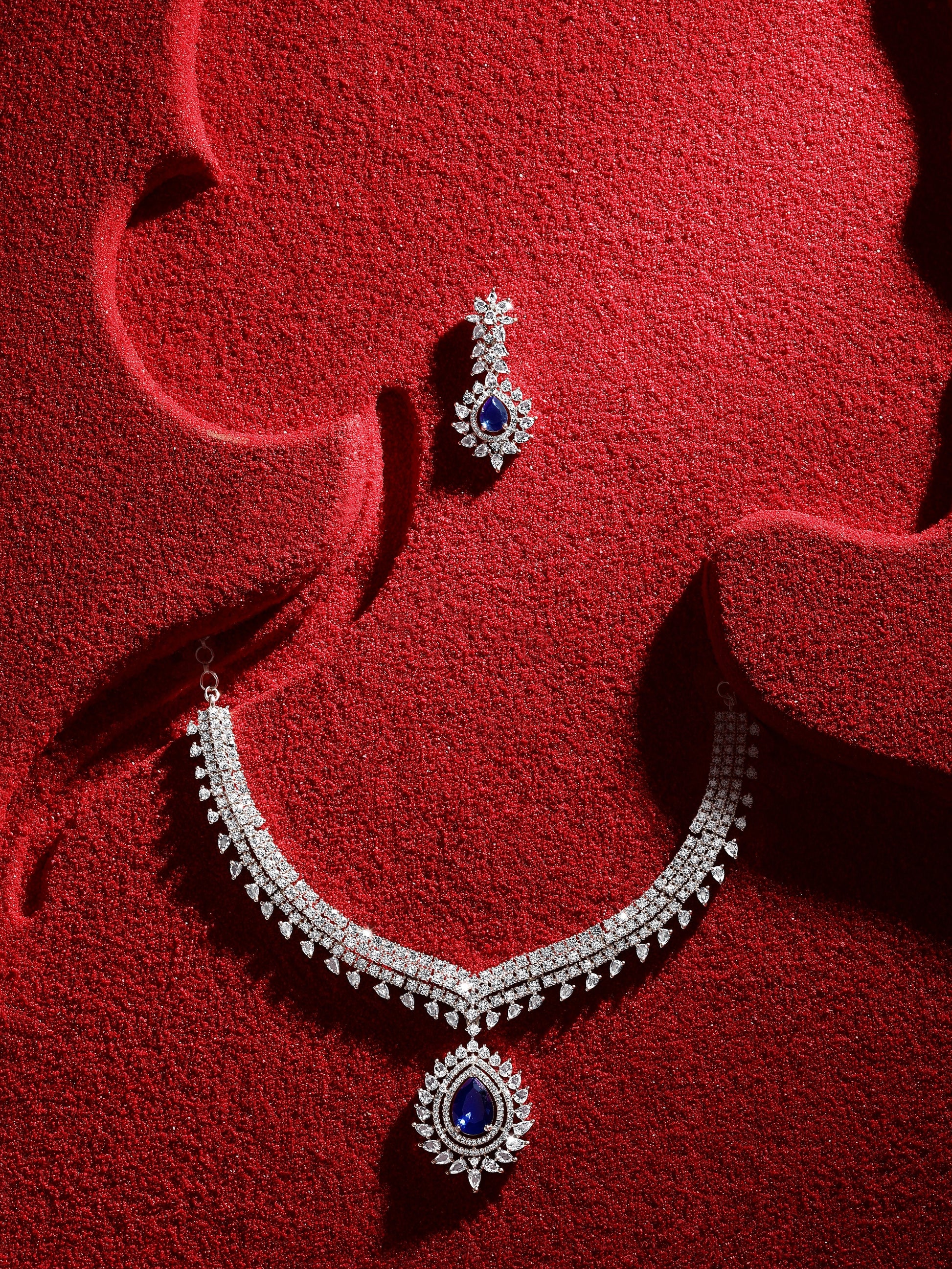 Asmitta Jewellery women's Blue CZ American diamond Necklace Set crafted in premium Brass with elegant Rhodium Plated . This Necklace Set blends timeless beauty with modern sophistication, making it perfect