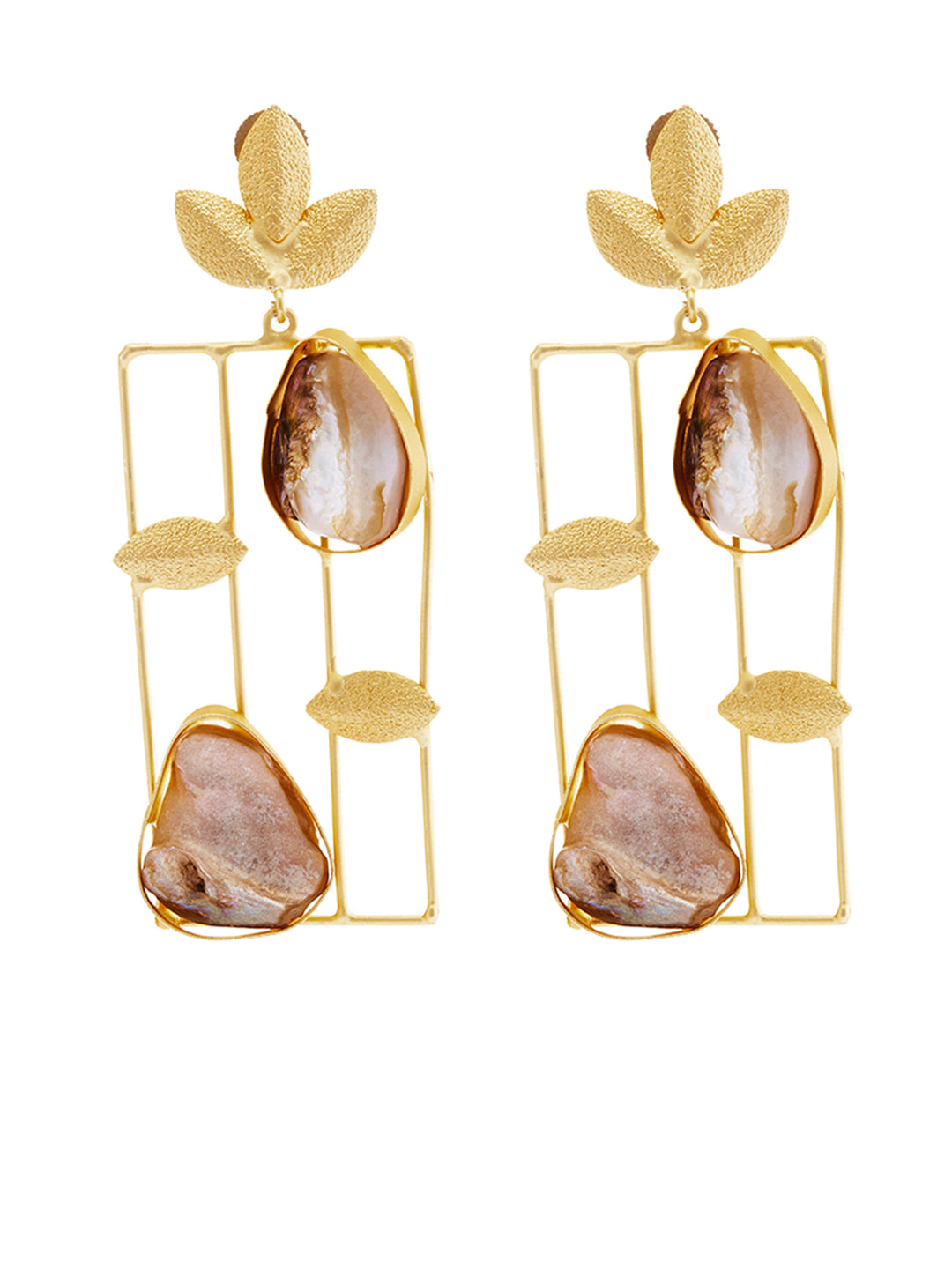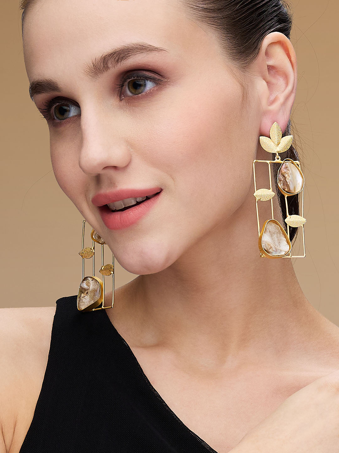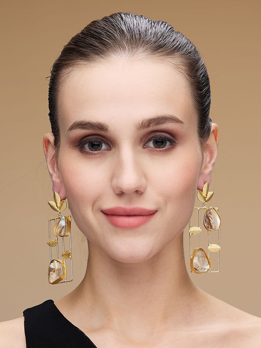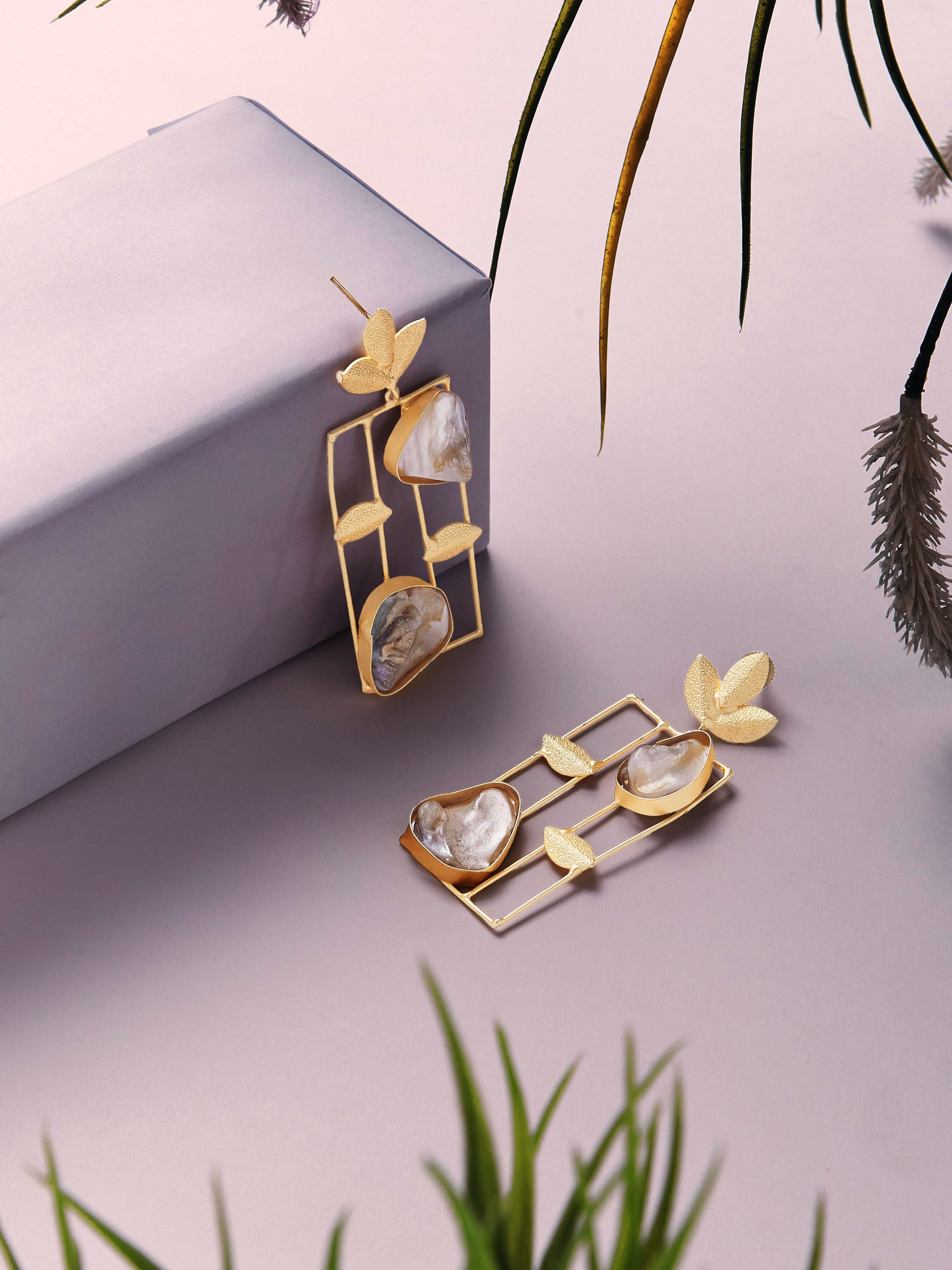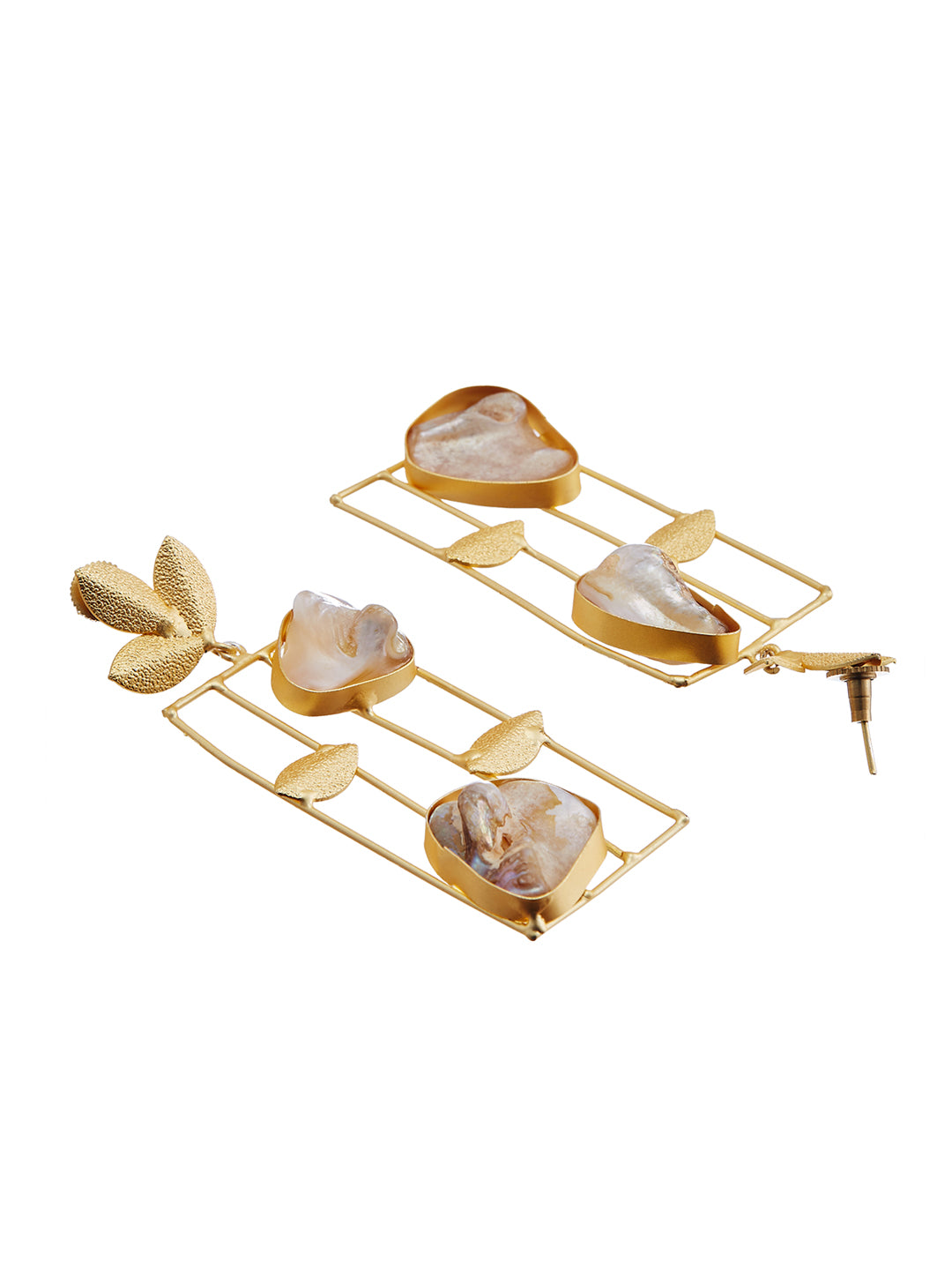 22KT Gold-Plated Pearls Square Shaped Drop Earrings