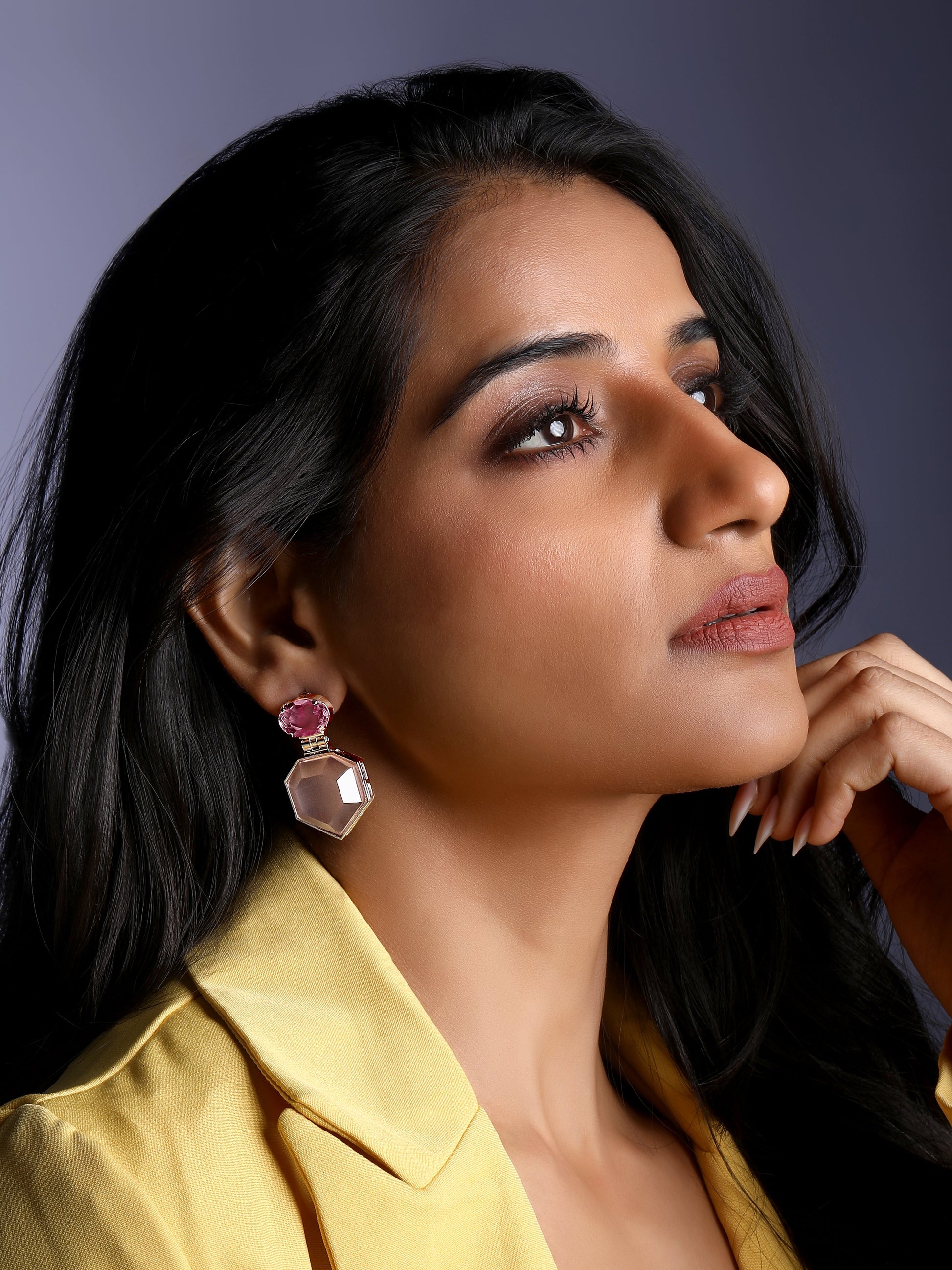 Silver-toned, pink and purple geometric drop earrings, silver-plated, has artificial stones studded details